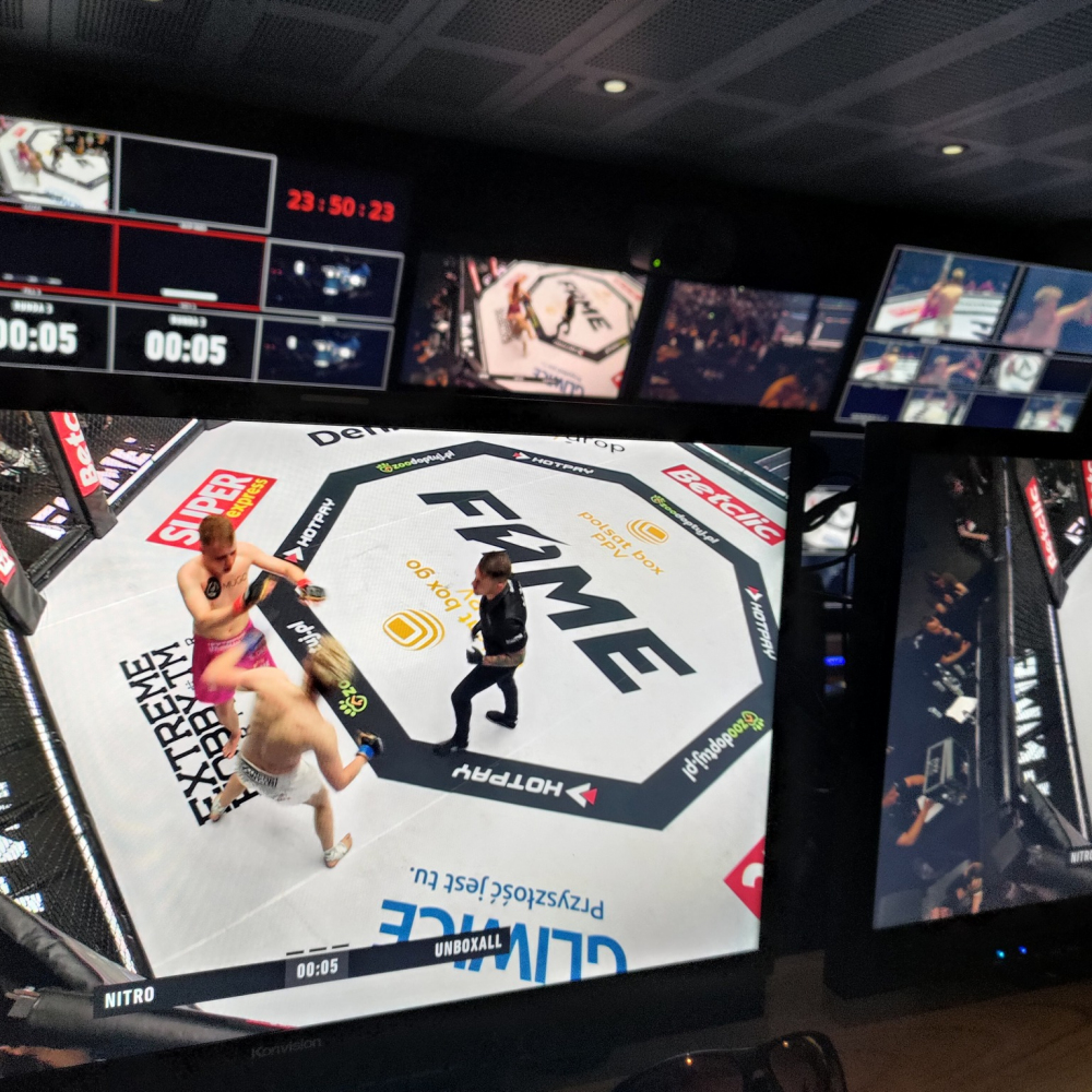 W tym gronie znajduje się również organizacja FAME MMA, największa organizacją freak-fight w Europie. Dostarczamy tam systemy graficzne oraz zajmujemy się w pełni kwestiami produkcyjnymi i reżyserskimi. Dodatkowo korzystamy z innowacyjnej aplikacji MBC Timer, dzięki której sędzia czasowy ma pełną kontrolę nad czasem rundy, który jest zsynchronizowany z grafikami na transmisji, jak i ekranach LED na arenie.
